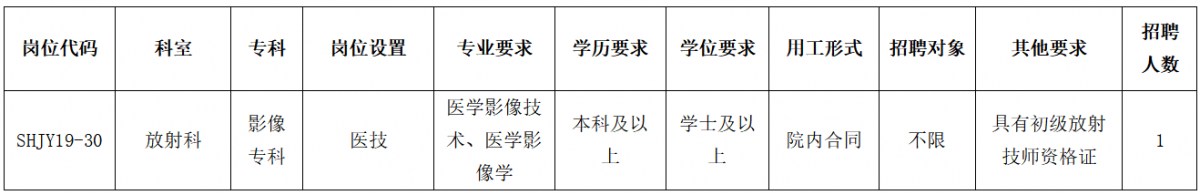 中山大学孙逸仙纪念医院深汕中心医院因工作需要,面向社会公开招聘放射科影像专科合同医技岗位1名,现将有关事项公布如下: